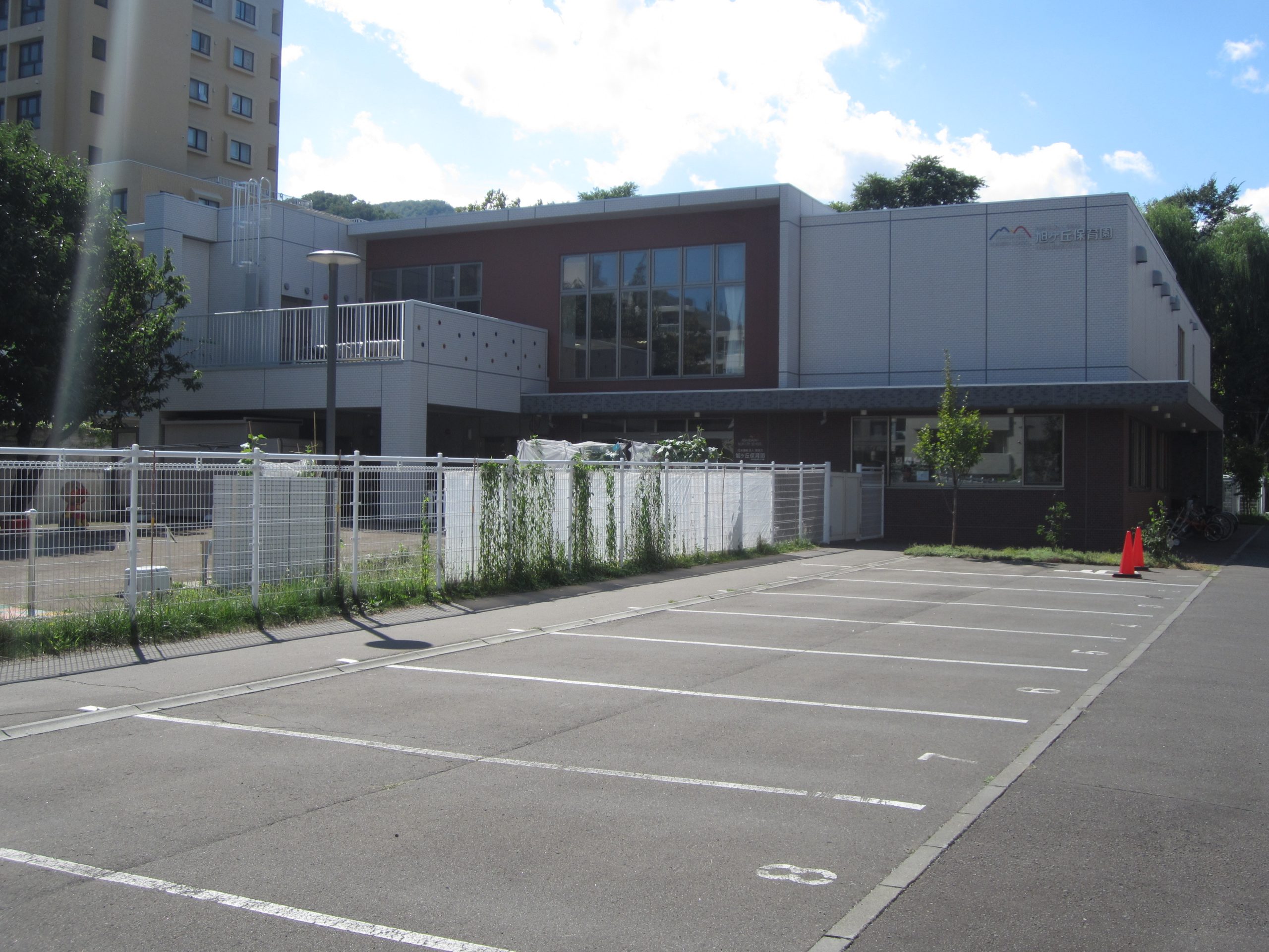 外観は、地域の景観を損なわないモダンな構造や色合いになっています。敷地が中央区の中でも比較的広く、17台分の送迎専用の駐車スペースもあります。