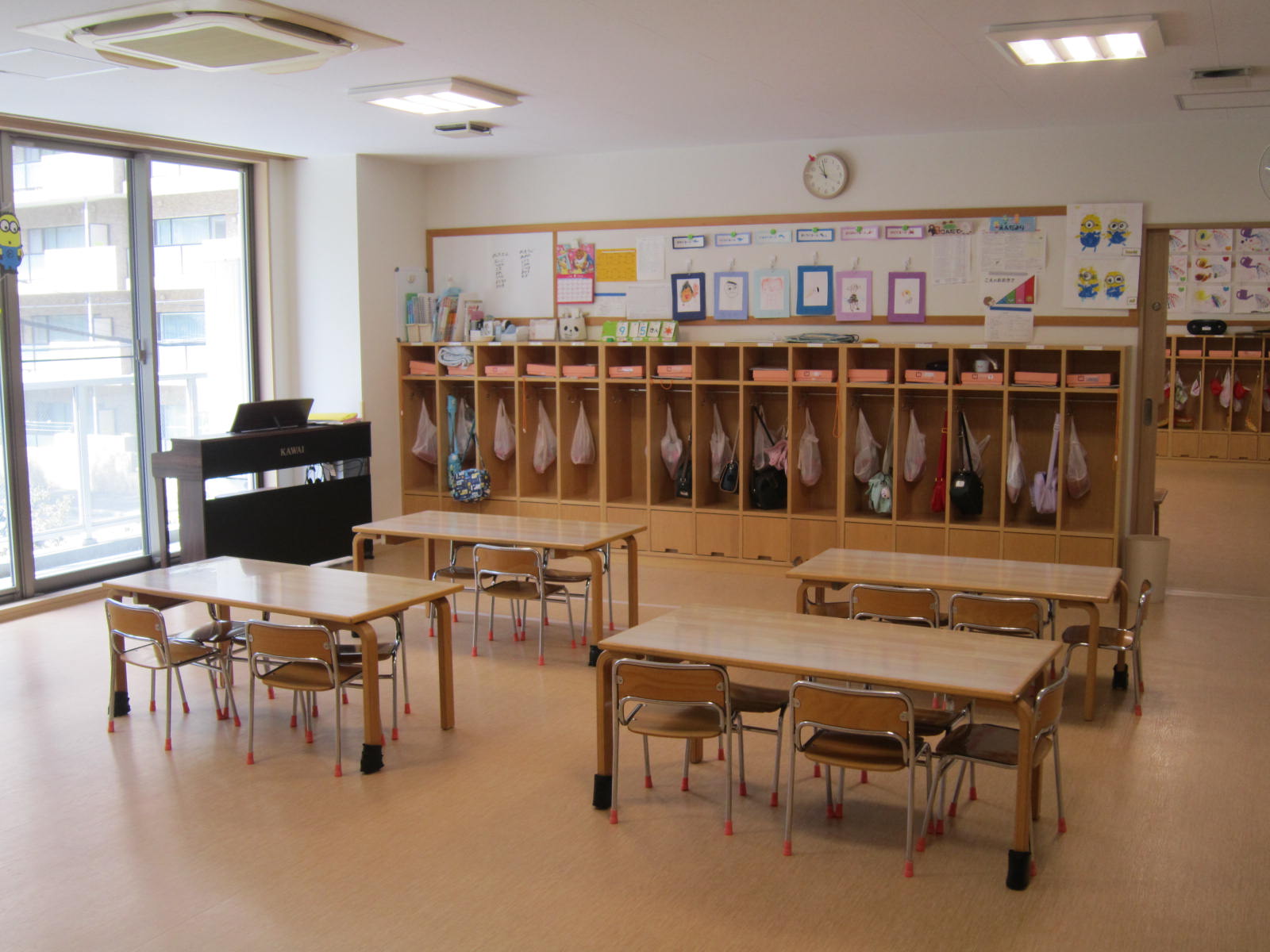保育室のテーブルや椅子などは、温かみのある木製の物を使用しています。またお友達や担任の先生と制作や描画等楽しく過ごせる環境を整えています。
